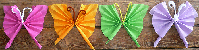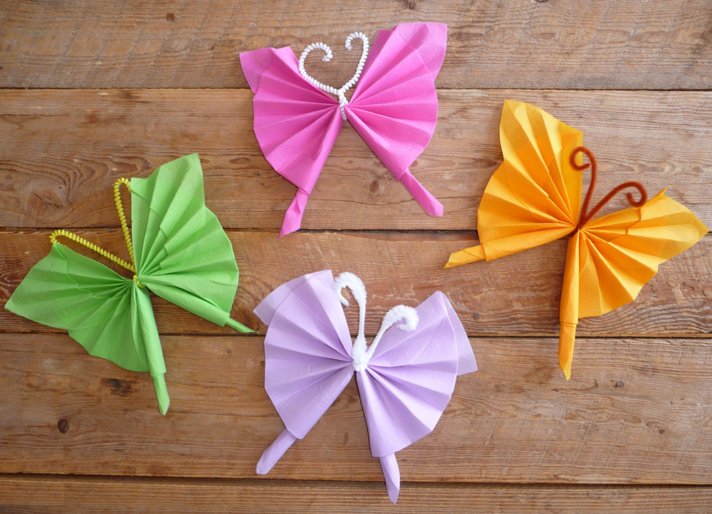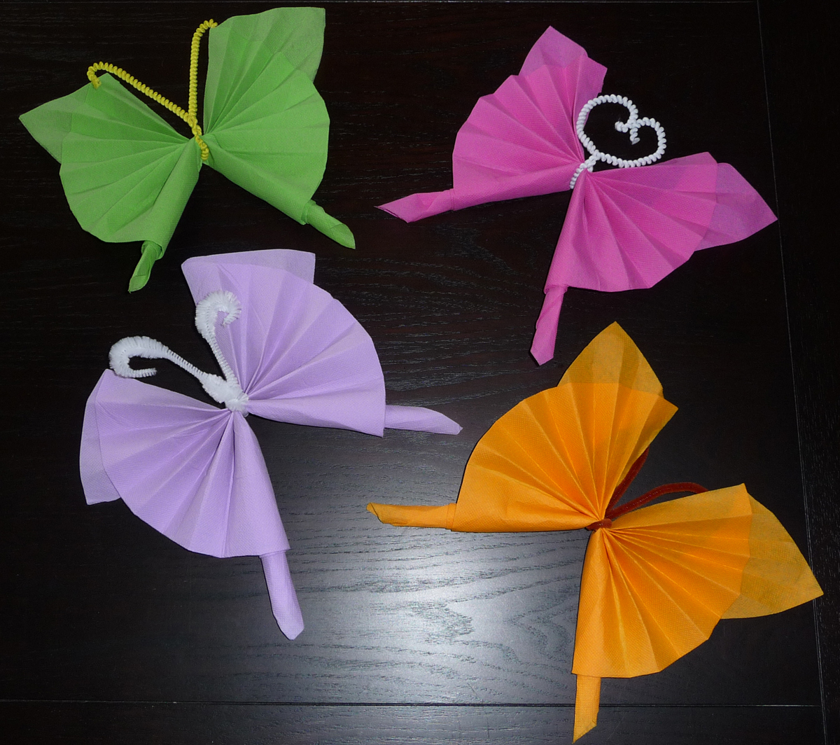 9) Avec le fil chenille, on fait un noeud au centre et on enroule les extrémités pour faire des antennes. et voilà un joli papillon prêt à s'envoler.