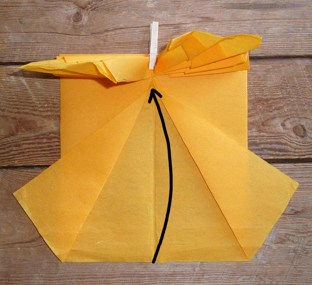 6) Retournez votre pliage et roulez la partie supérieure jusqu'a atteindre la pince à linge au centre.