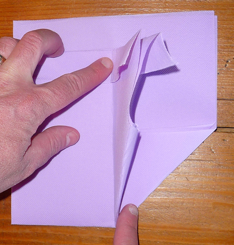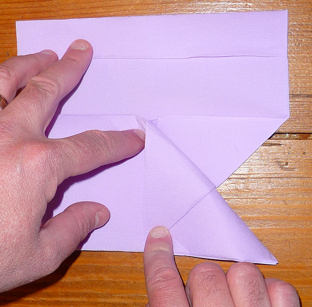 6) Prenez le pan de droite et replier le sur le pan gauche.