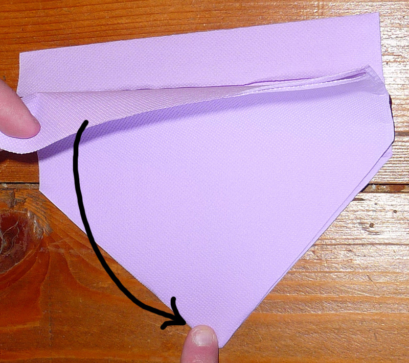 12) Rabattez le pan du haut vers le bas comme indiqué par la flêche.