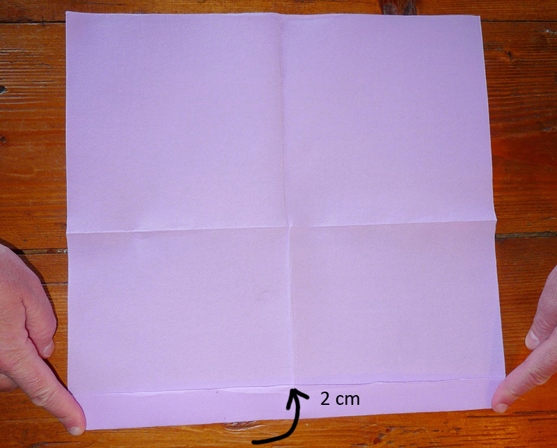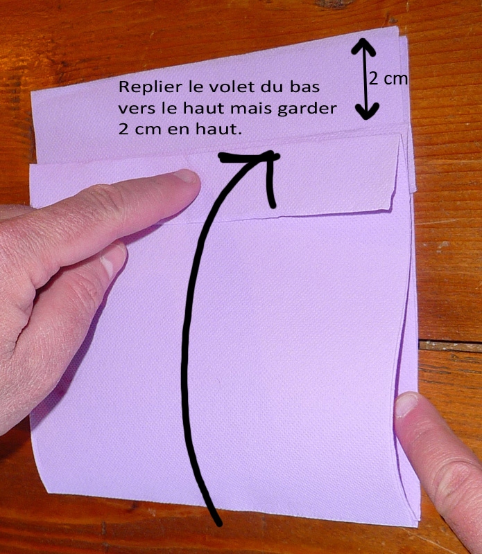 4) Plier le volet du bas vers le haut tout en gardant 2 cm en haut.