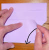 19) Faites-en de même pour le pan haut gauche. Prenez le pan haut gauche et repliez-le sous le pliage existant comme la flêche l’indique.
