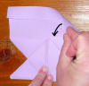 18) Pour faire la tête du poisson : prenez le pan haut droit et repliez-le vers le centre en glissant le pan sous le pliage existant.