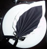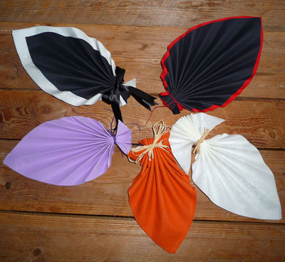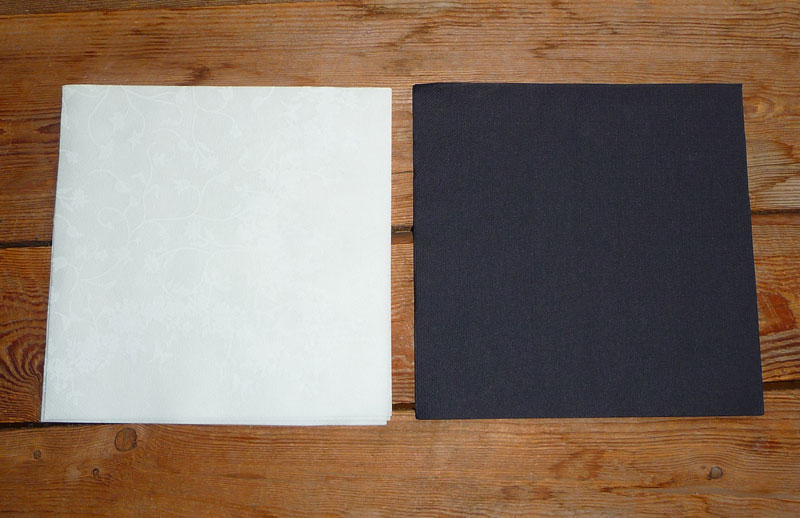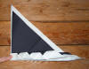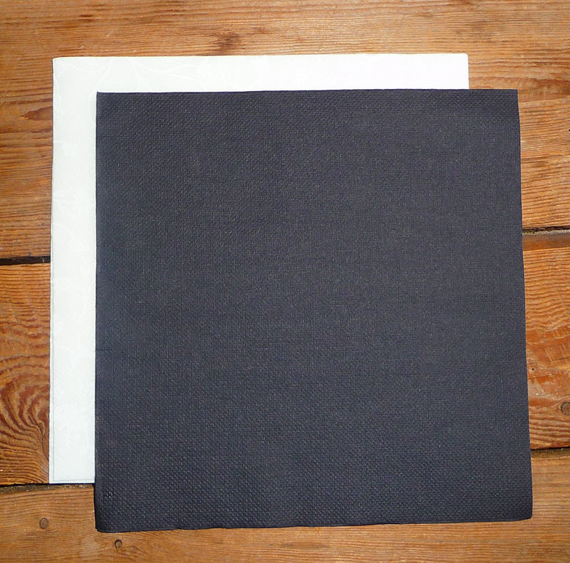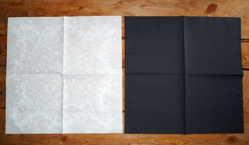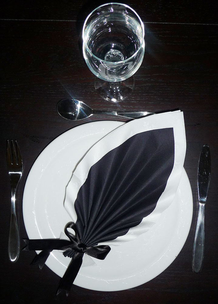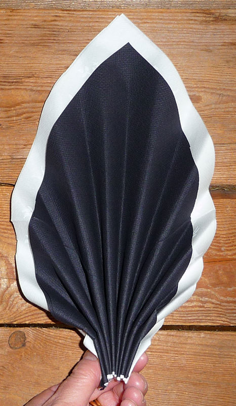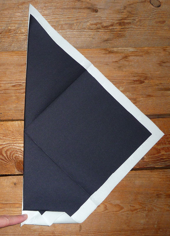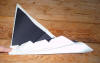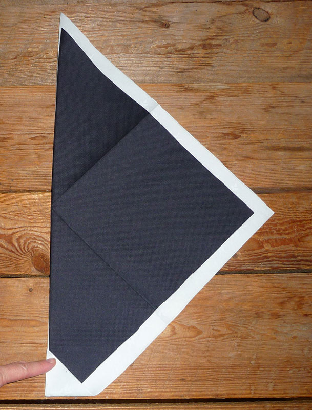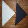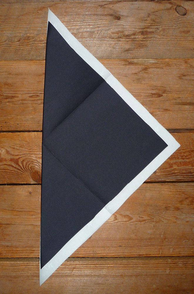 E) Vous obtiendrez ainsi une serviette blanche intacte et une serviette noire un peu plus petite. Les plier en forme de triangle.