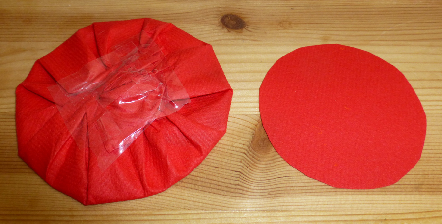 3) Utilisez le quart d’une serviette en papier de couleur rouge pour recouvrir votre cercle cartonné.