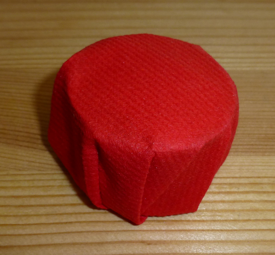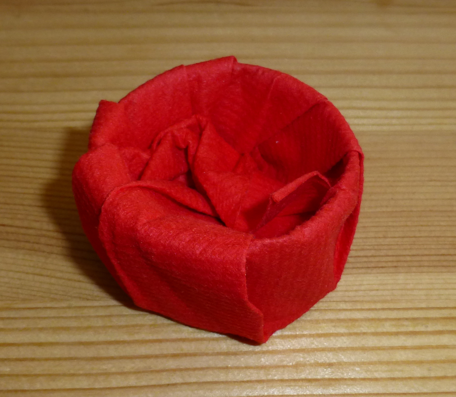 3) Utilisez une serviette de couleur rouge 40 x 40 cm.
