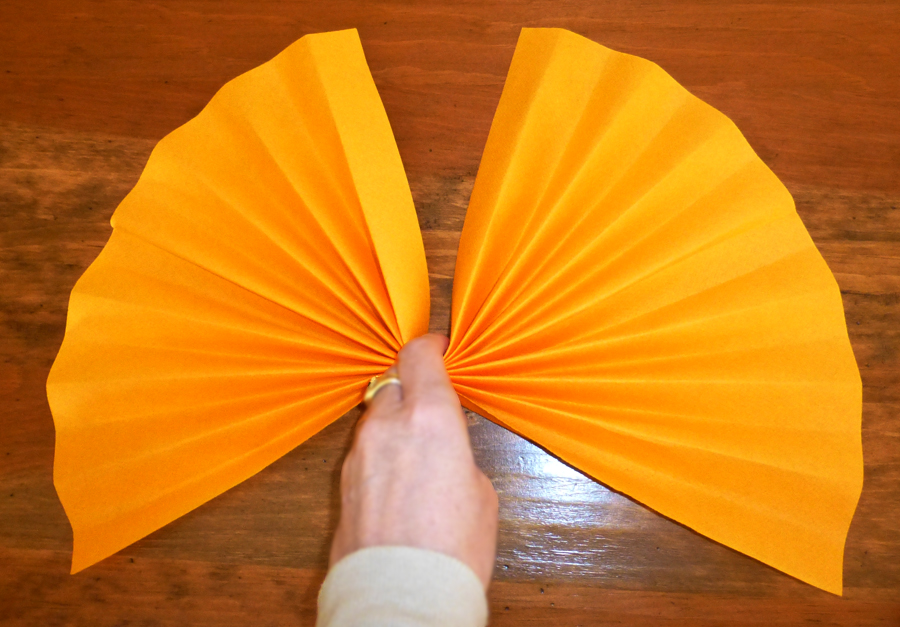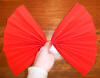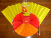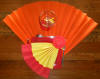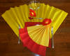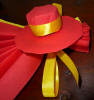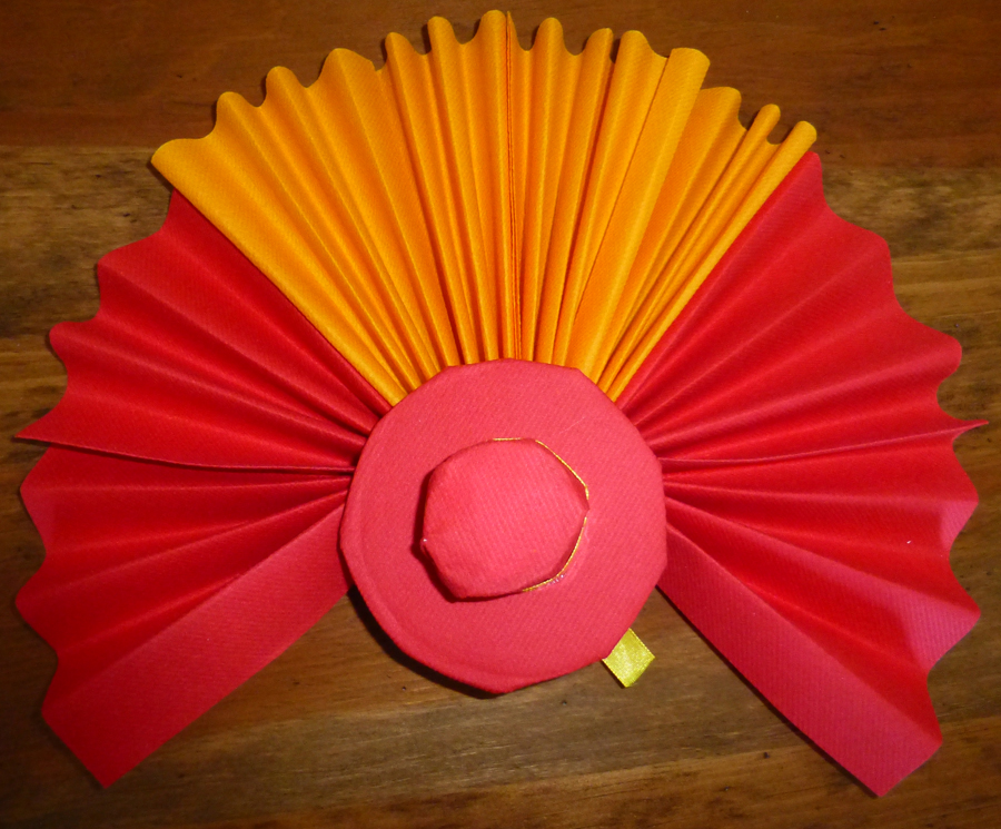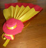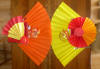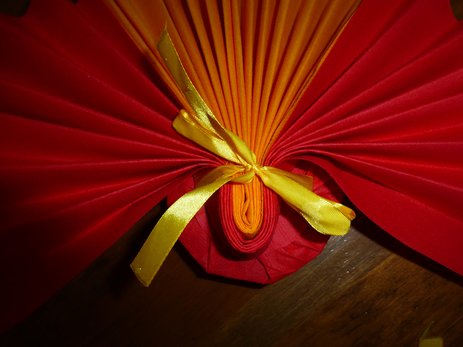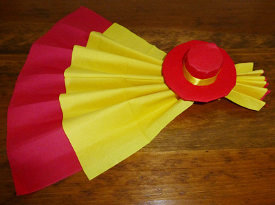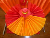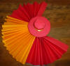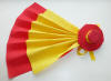 Placez l'éventail jaune par dessus l'éventail rouge puis liez le tout avec votre sombrero.