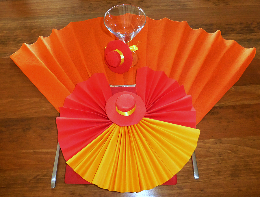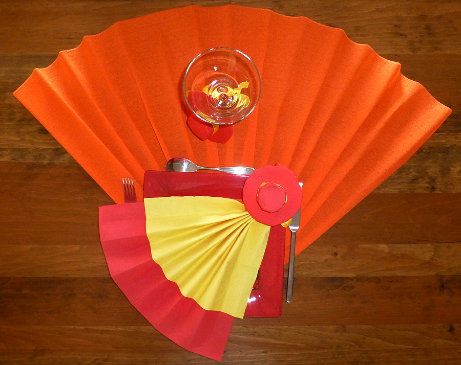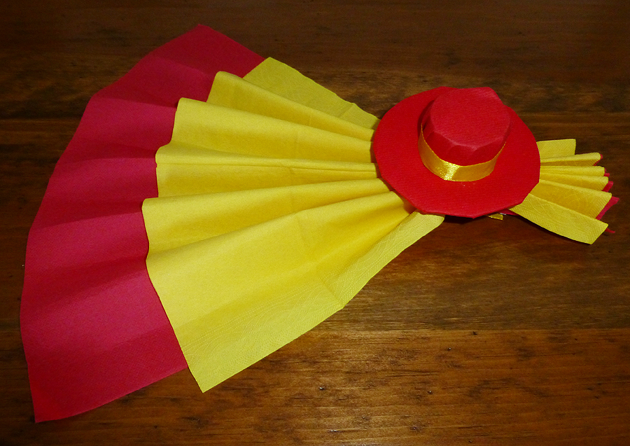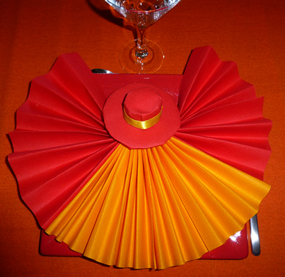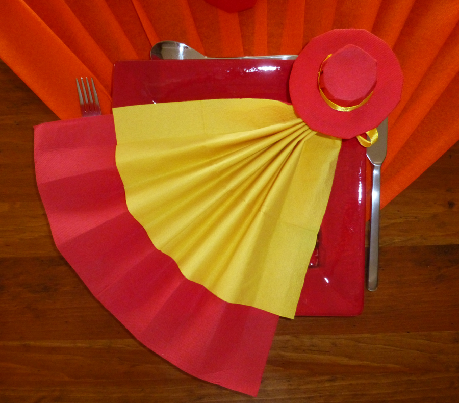 serviette de table en papier en forme d'éventail avec son chapeau flamenco