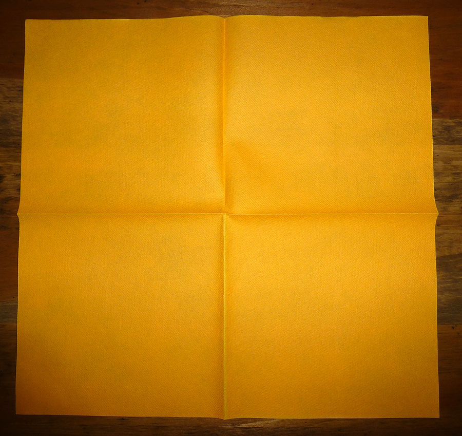 1) Utilisez une serviette de couleur orange ou jaune 40 x 40 cm.