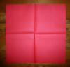3) Utilisez une serviette de couleur rouge 33 x 33 cm.