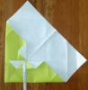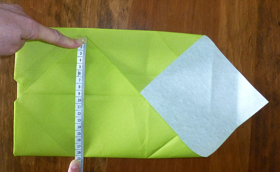 2) Pliez la pointe du bas vers le haut à 18 cm du bord.