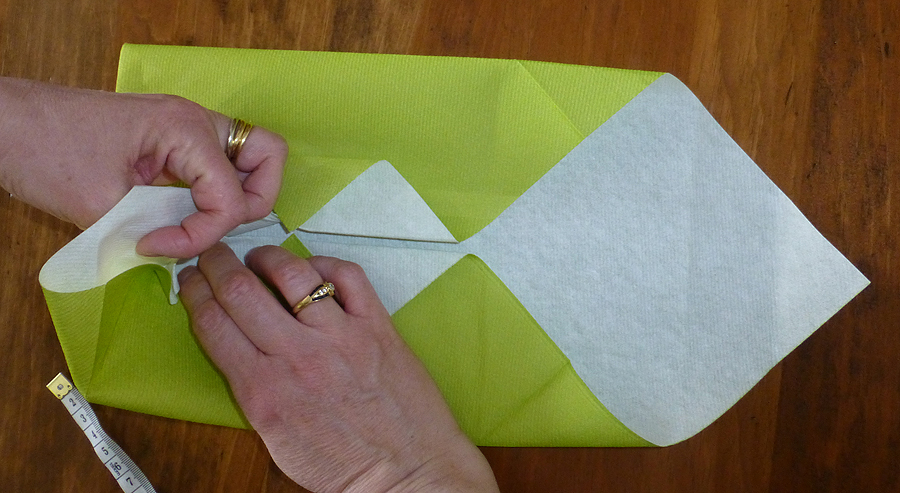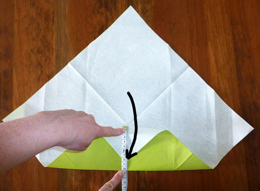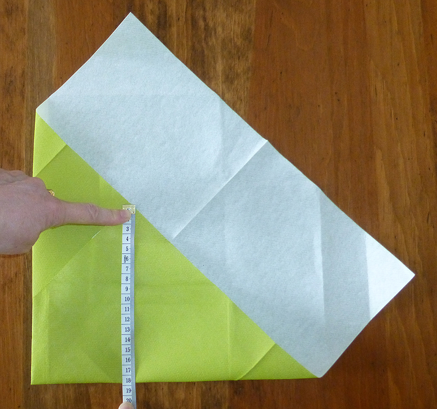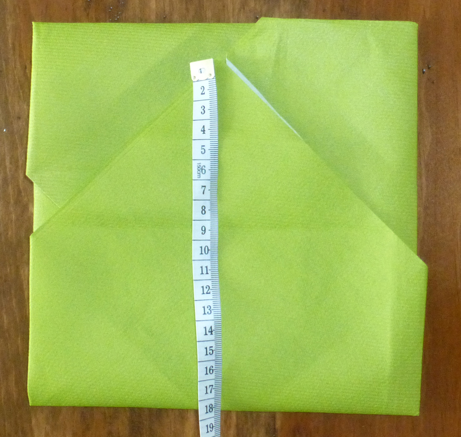 4) Et à nouveau repliez la pointe vers le centre afin d’obtenir un premier pli de 4 cm.