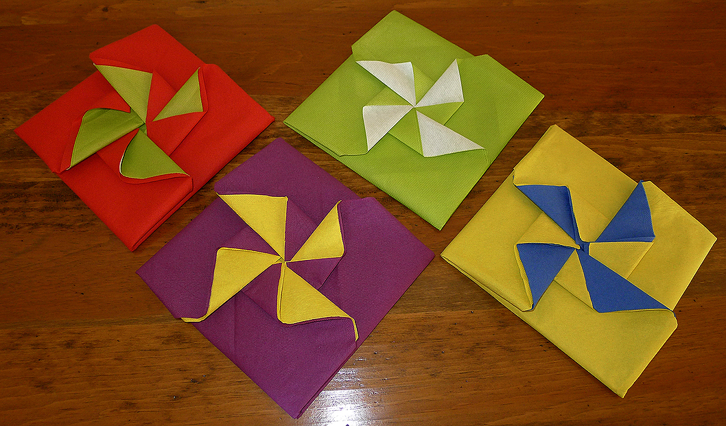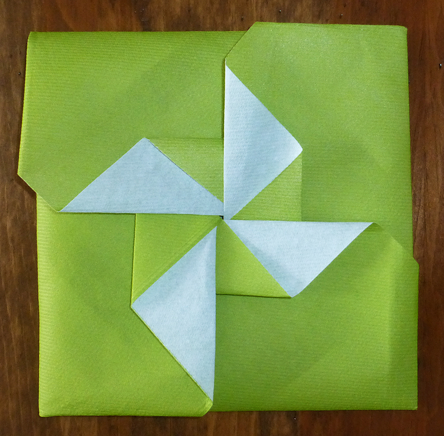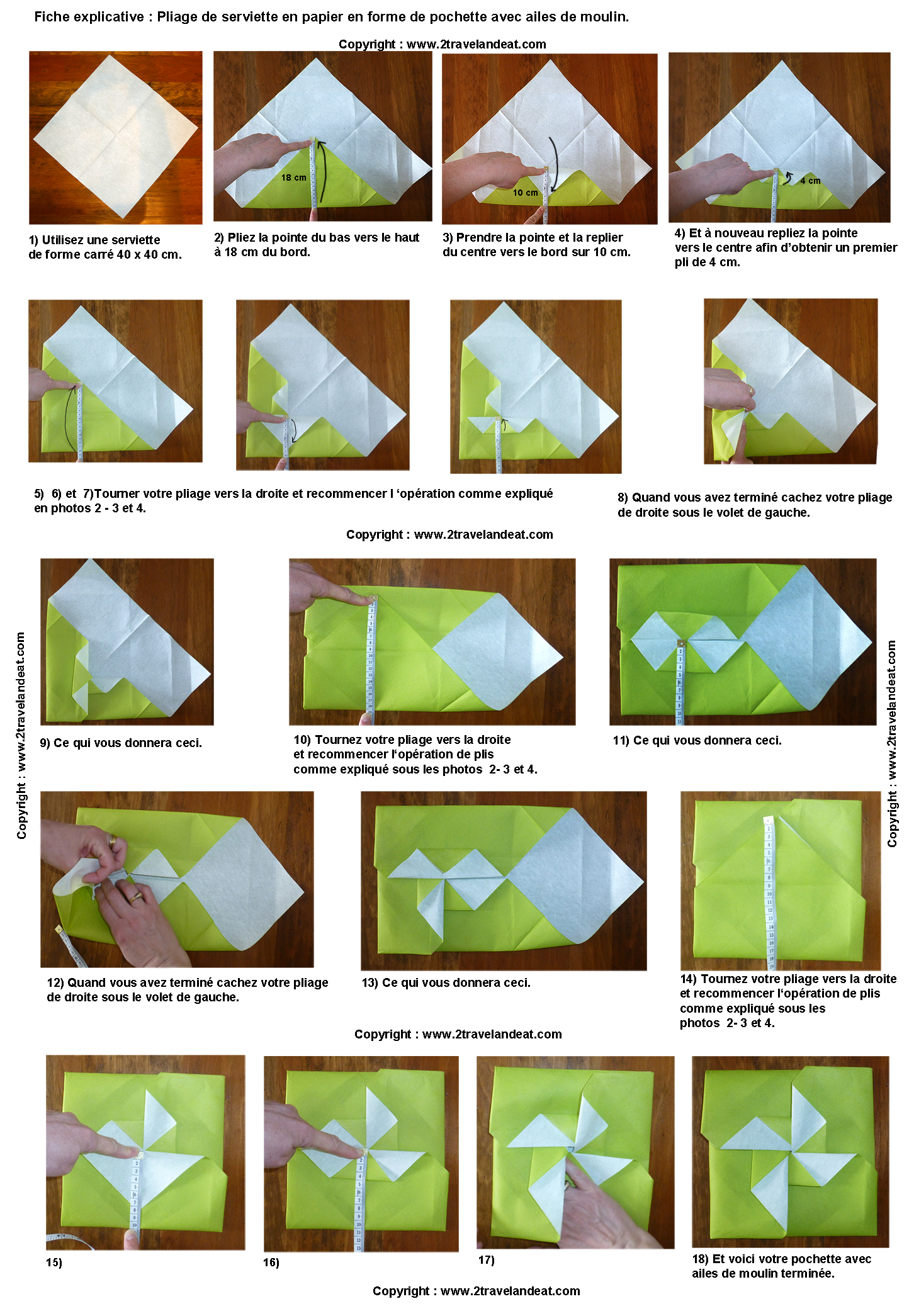 5) 6) et 7)Tourner votre pliage vers la droite et recommencer l‘opération comme expliqué en photos 2 - 3 et 4.