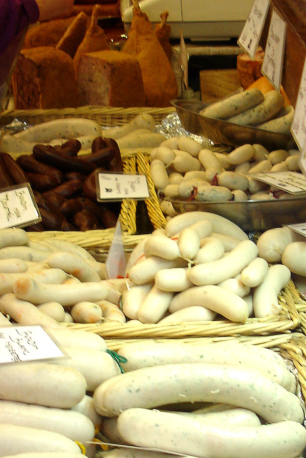 Hummmmm que ça a l'air bon, boudins blancs et boudins noirs et saucisses et saucissons.