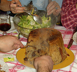 toile ou un filet crocheté. Le farcement est un plat copieux et qui