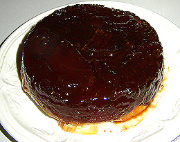 Au moment de la servir, (si possible encore tiède ou chaude) mettre le moule sur un feu vif pendant 1 minute (jusqu'à ce que la tarte ne soit plus solidaire du moule), et la retourner doucement sur une assiette plate.