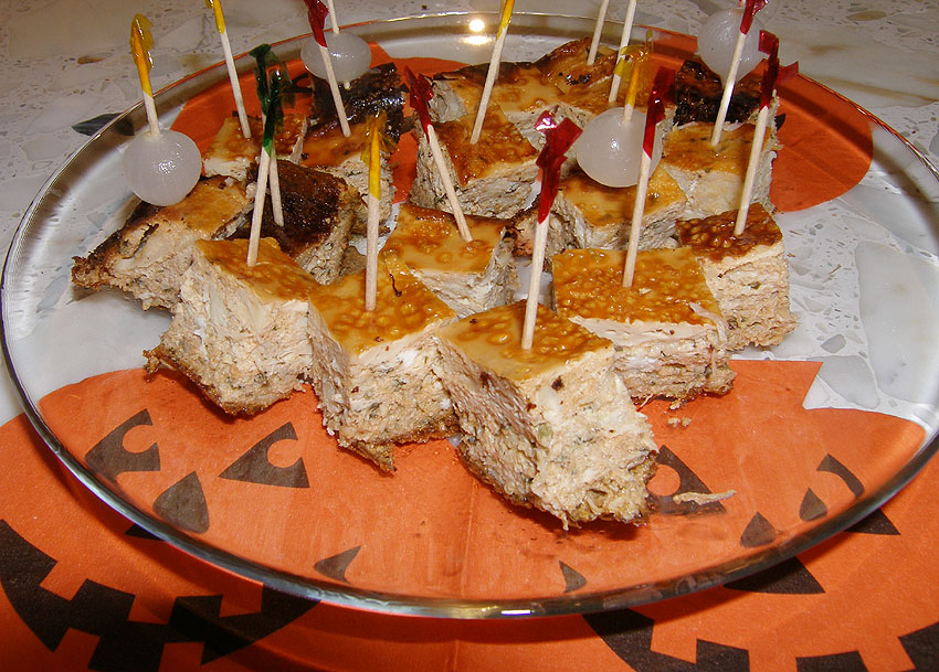 Démouler, laisser refroidir puis couper la terrine en cubes.