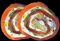 La terrine de crabe démoulée. Une fois refroidie vous pourrez la découper en petits cubes.