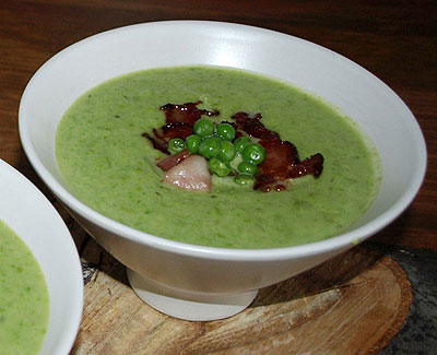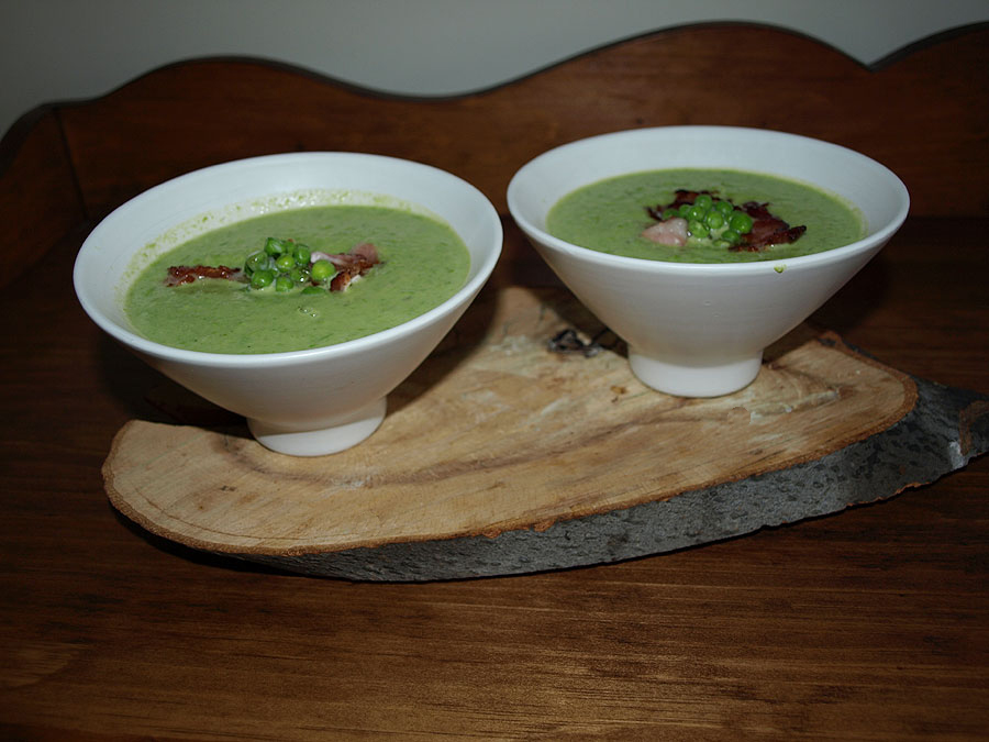 Avant de mixer garder 2 cuillerées de petits pois de côté.