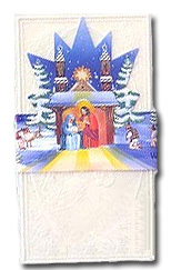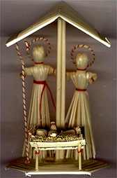 Nativité (Jésus, Marie, Joseph et les animaux). À l'étage au-dessous,