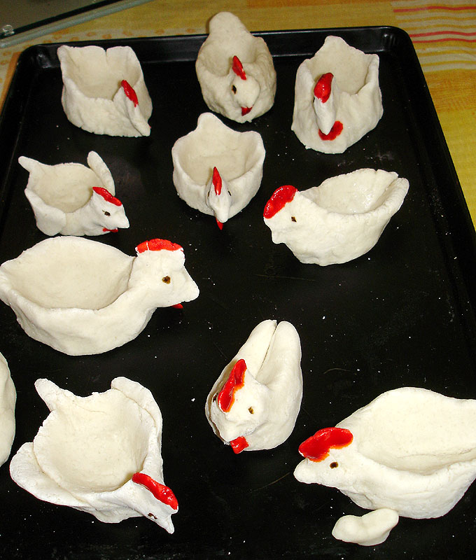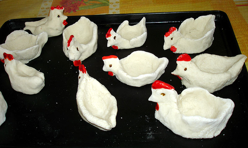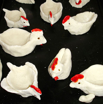 Modelez vos cocottes et peignez les crêtes en rouge.