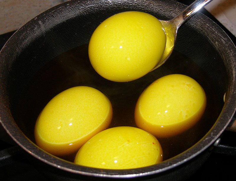 végétale dessus et essuyez les oeufs avec l'huile pour leur donner