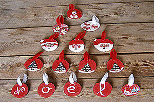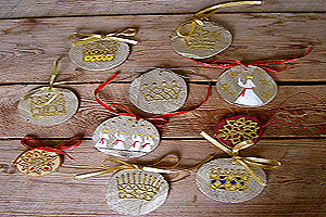 faire des petits trous pour attacher les rondelles ou boules de Noël.