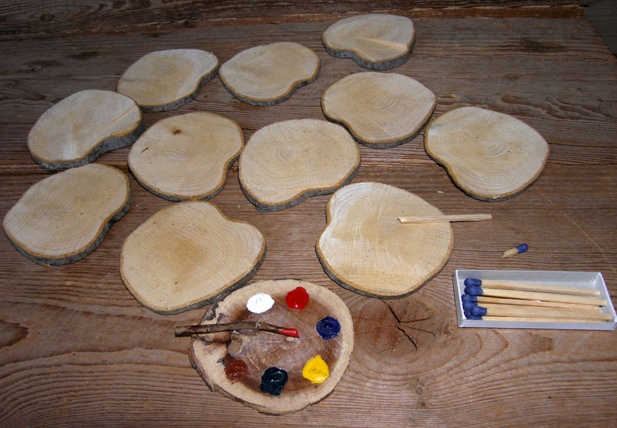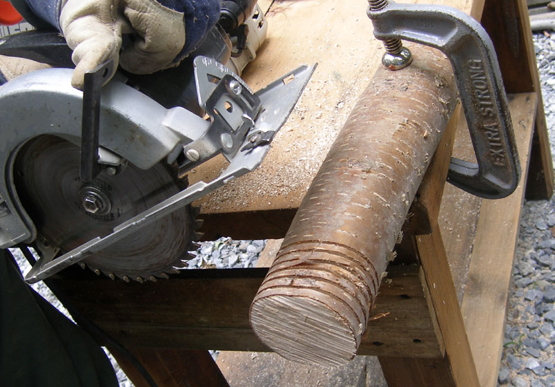 rondelles de 2 mns d épaisseur environ dans une bûche de bouleau ou de