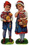 Elle les prit tous deux par la main et les fit entrer dans la maisonnette. Elle leur servit un bon repas, du lait et des beignets avec du sucre, des pommes et des noix. Elle prépara ensuite deux petits lits. Hansel et