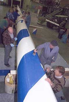 mai, est ensuite peint de bandes blanches et bleues (les couleurs de la