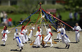 et restaurants. L'arbre de mai est lui aussi décoré avec des fleurs et