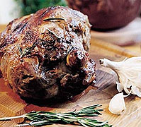 Glissez une gousse d'ail près du manche du gigot. Piquez la viande avec