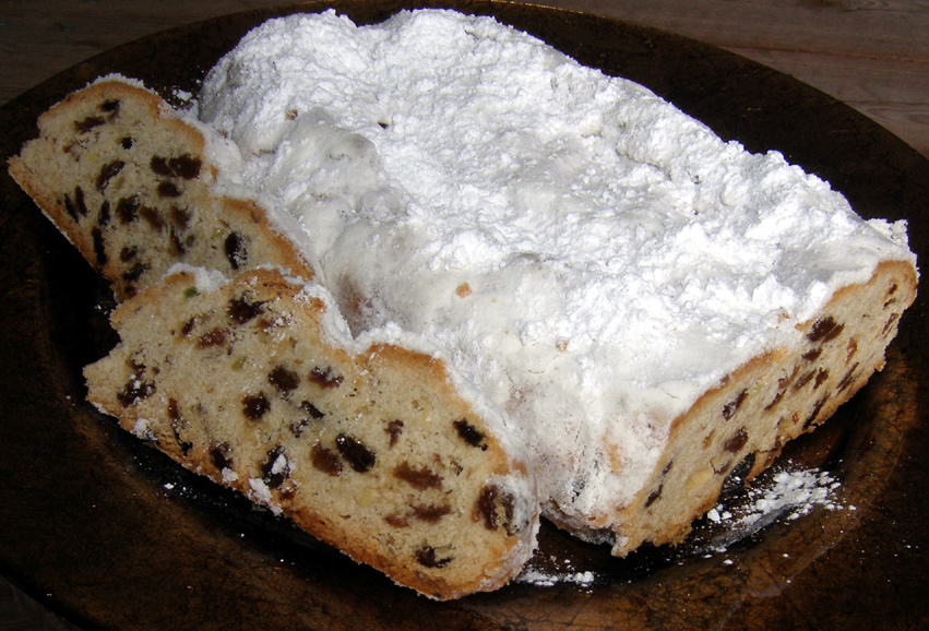 Les Allemands auraient inventé le Christstollen, roi des pâtisseries de Noël. Cette tradition remonte très loin dans le temps. C'est à Naumburg an der Saale en 1330 qu'il est mentionné pour la première fois en tant que privilège épiscopal dans la Guilde des boulangers. Cependant, son origine remonte probablement à des temps plus reculés et païens.