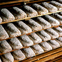 De nos jours, ces ingrédients venant du monde entier sont disponibles toute l'année si bien qu'en septembre, on peut déjà sentir l'odeur exquise des Stollen tout juste sortis des fours des grandes boulangeries. Beaucoup de Stollen aux goûts les plus variés sont cuits à cette période. Alors que dans les régions du Nord et de l'Ouest de l'Allemagne, les Stollen sont préparés avec de la pâte d'amande, dans les régions du Sud de l'Allemagne, les Stollen sont préférés sans farce. Les Stollen à la pâte d'amande, les Stollen au beurre et les Stollen au beurre et aux amandes sont les plus appréciés de nos clients.