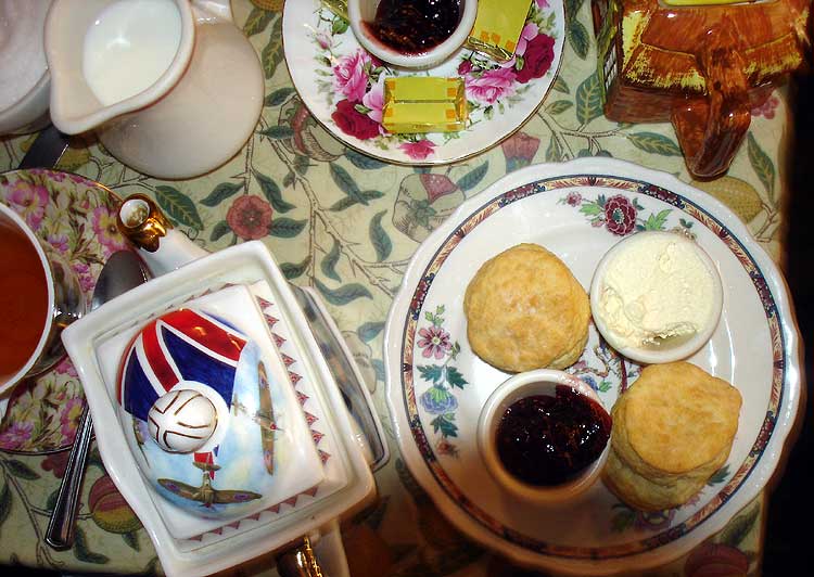 Scones, muffins, cookies, toasts divers, fromages, marmelades et autres douceurs sont servis avec abondance autour d'une tasse de thé dont seuls les britanniques ont le secret pour le rendre aussi agréable.