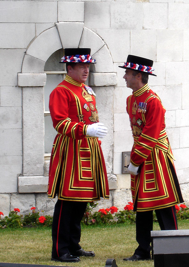 Le beefater est là pour surveiller et guider les touristes.