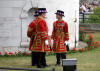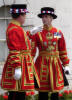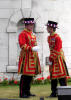 Voici les Yeoman Warder armés normalement de hallebardes gardant la forteresse de la tour de Londres.