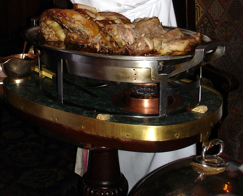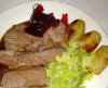 Agneau tranché et pommes de terre sautées chou vert à la mode Savoy et gelée de fruits