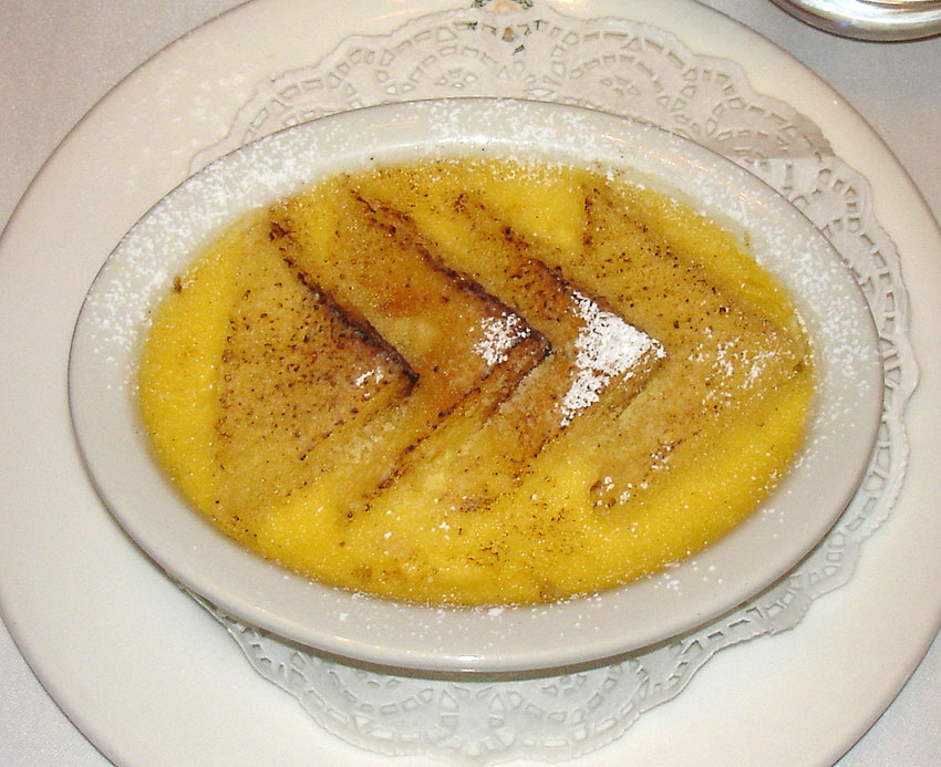 En dessert Bread and butter pudding (pouding au pain et crème)