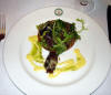 En entrée tarte au fromage Stilton et sa garniture aux figues et salade