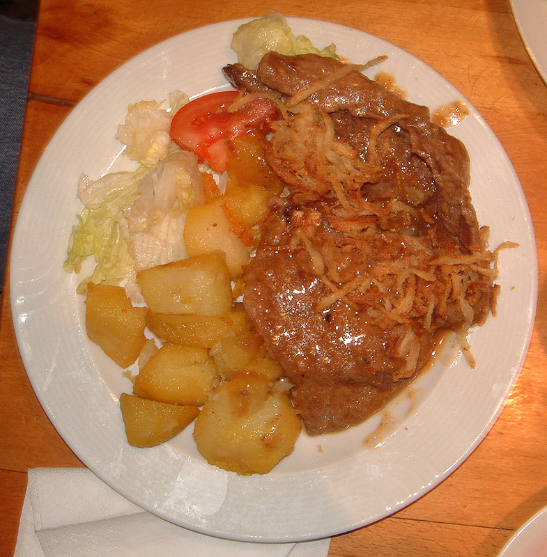 Le Tafelspitz mit G'röste ou une tranche de boeuf bouilli que l on sert avec des pommes de terre sautées.