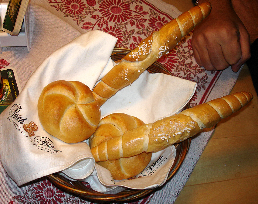 Les petits pains longs au gros sel le Salztangerl et les petits pains ronds les kaisersemmel.