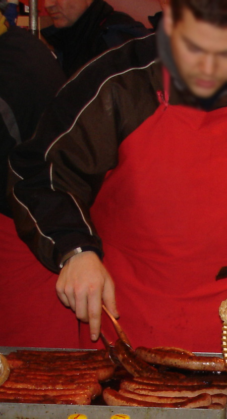 les saucisses sont en vente dans des kiosques.
