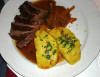 Magret de canard avec de la polenta.