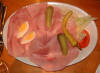Assiette de charcuterie à la vinaigrette et salade de choux.