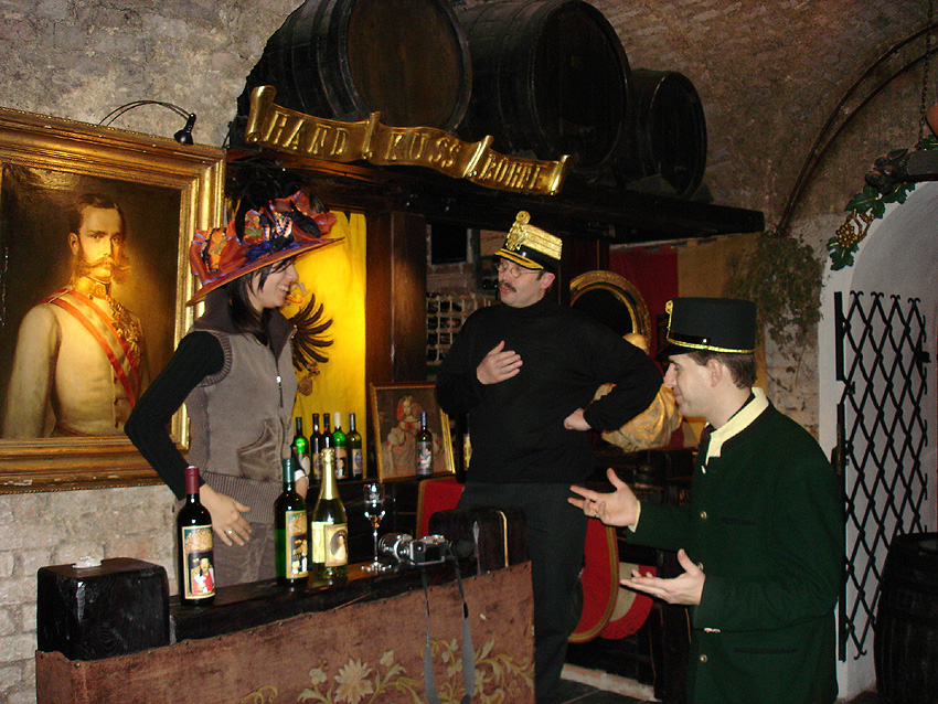 Petite scène organisée par le fils du propriétaire pour apprendre le baisemain.