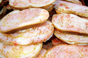 d'huile d'olive, salées, saupoudrées d'un peu de sucre glace, durant