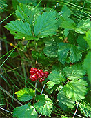 la ronce Arctique, plante qui aime les coins bien chauds. Les fruits en