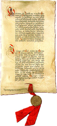 et ouvre un rouleau de parchemin et lit à haute voix la Déclaration solennelle, dont la formulation est la même chaque année.