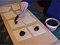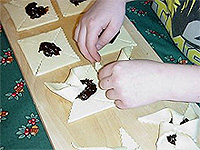 découper des carrés de 8 x 8 cm que vous repliez ensuite;